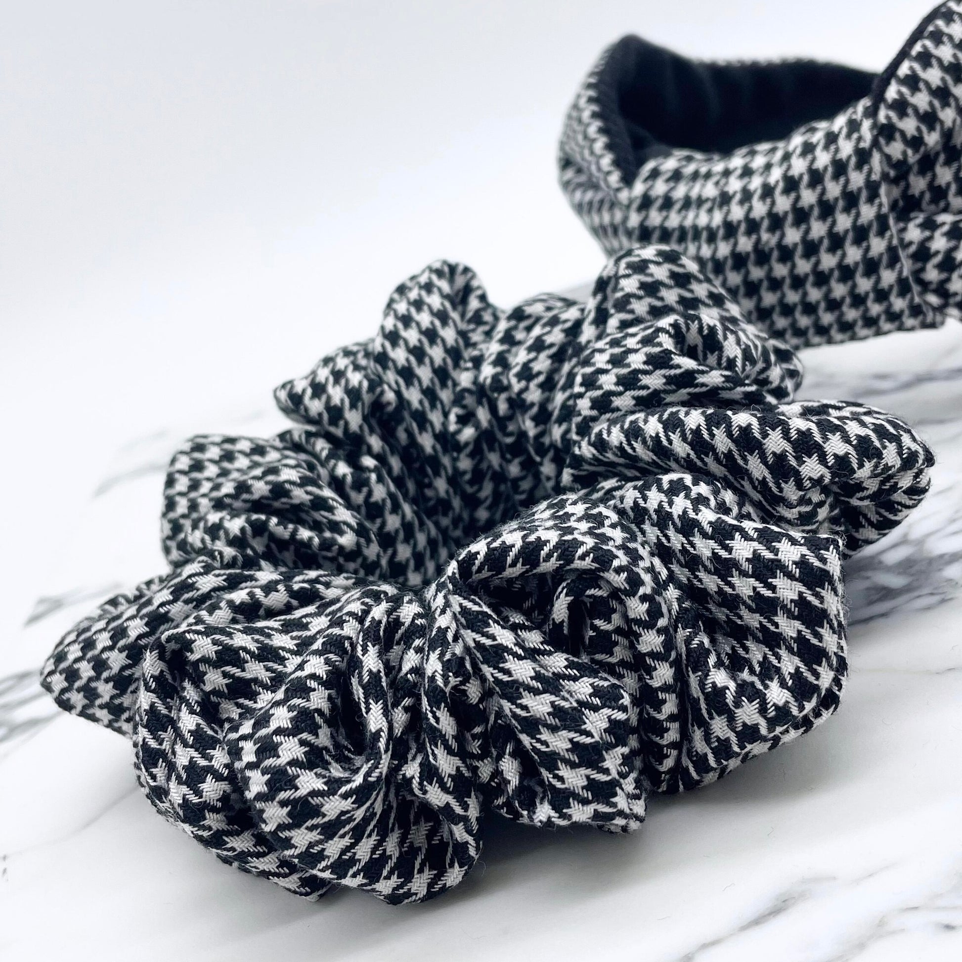 Houndstooth Flat Knot Headband & Scrunchie Gift Set